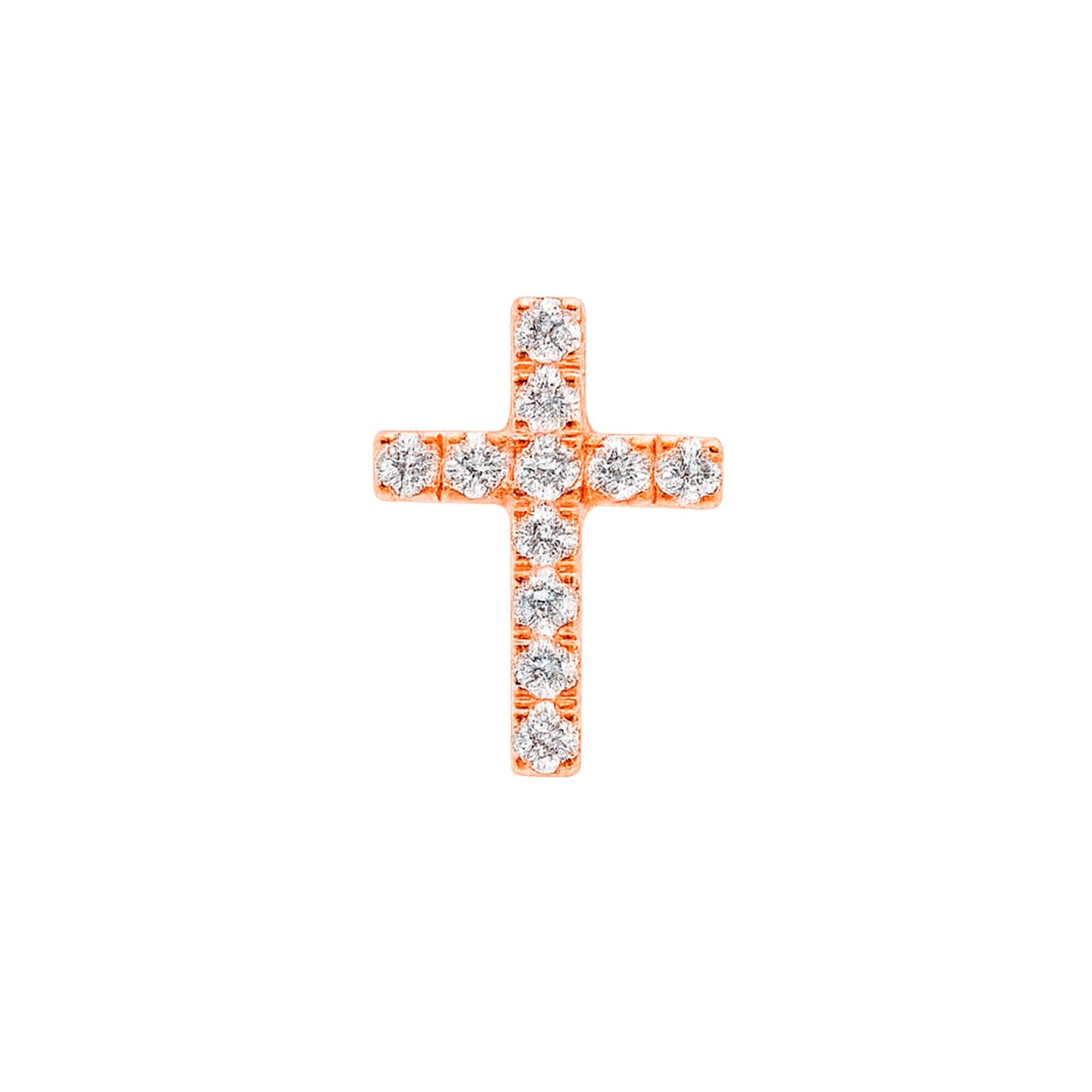 Aro individual en oro rosa 18kt, con un delicado diseño de cruz engastada con diamantes naturales.