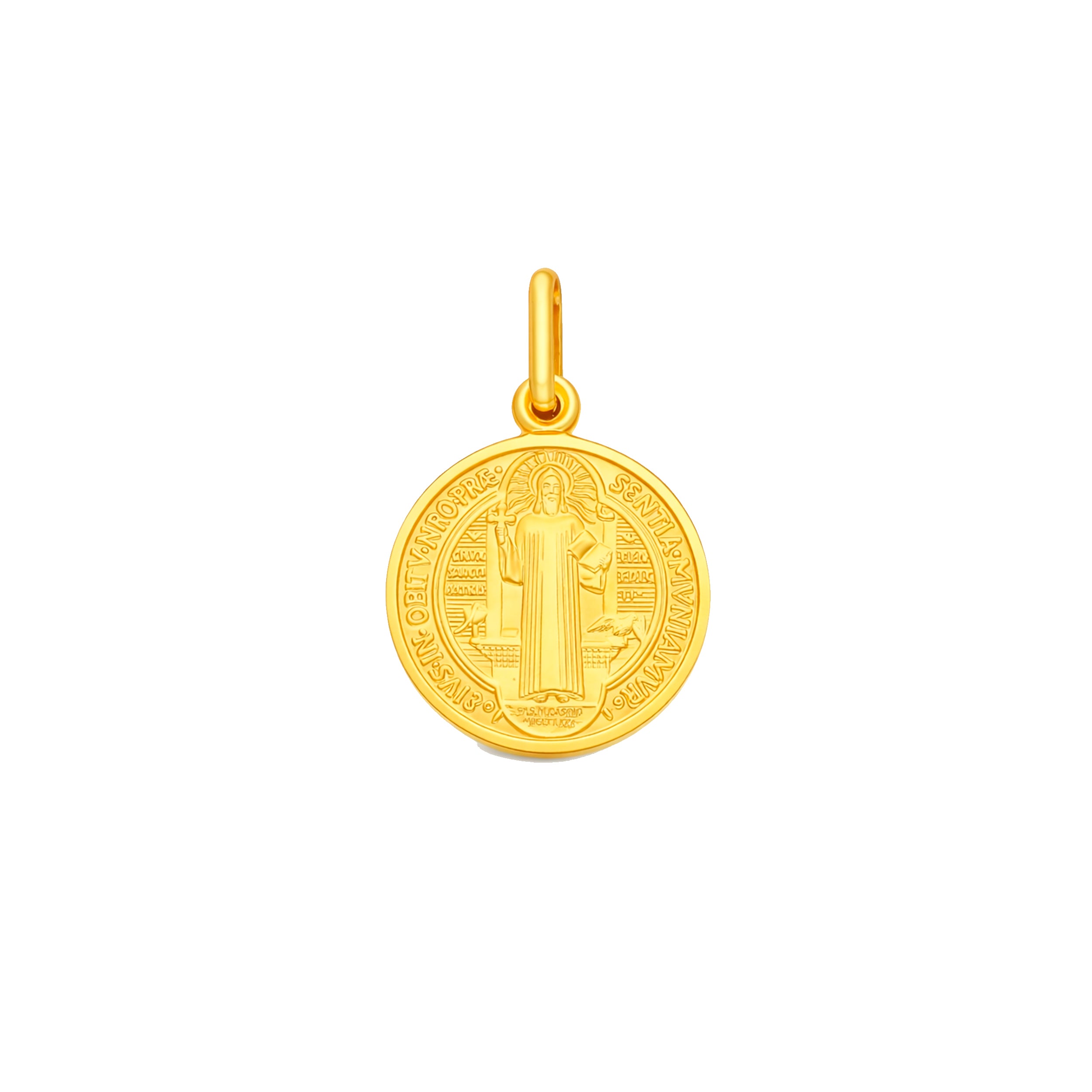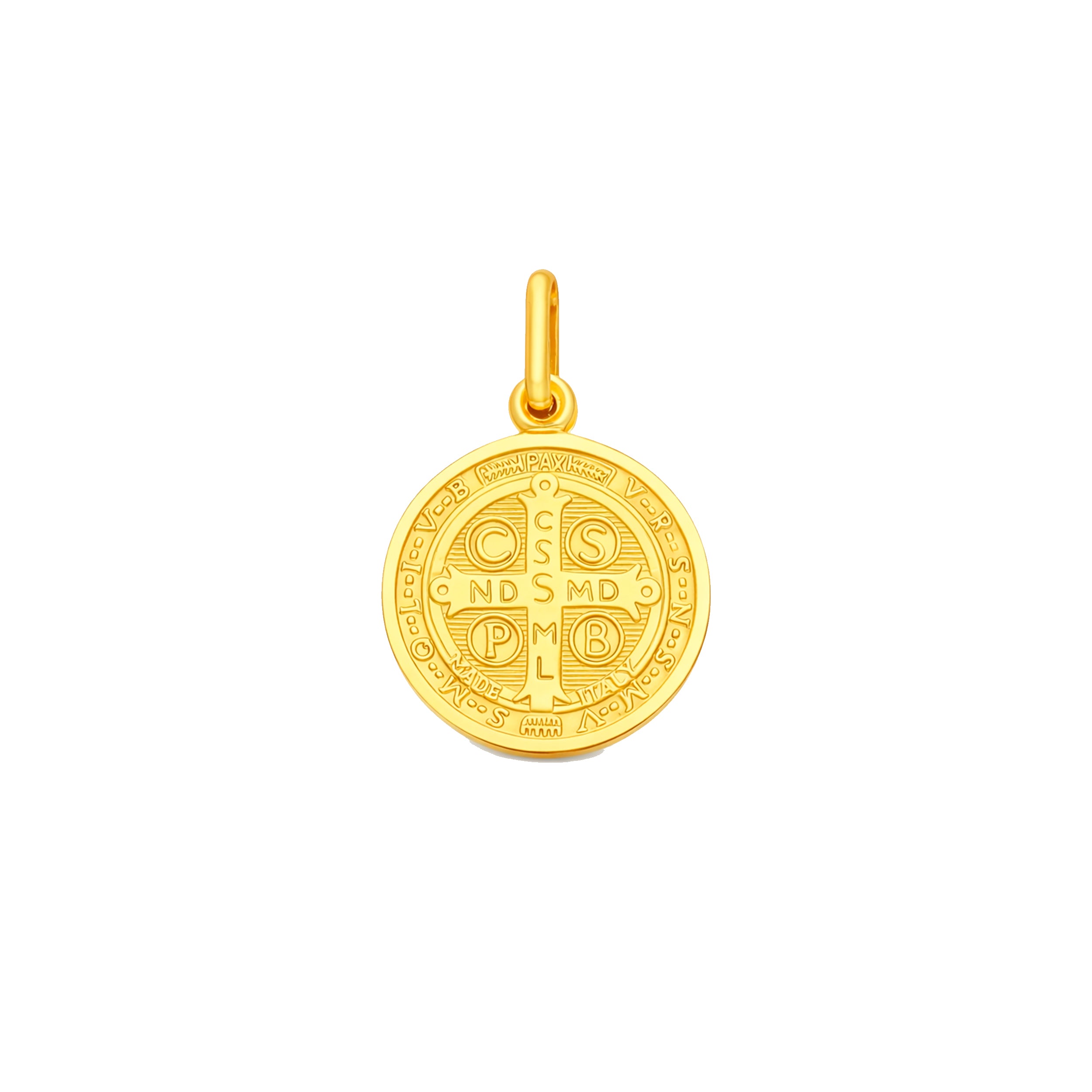 Medalla de San Benito de la colección JUST GOLD, elaborada en oro amarillo 18 kt y trabajada con un diseño tradicional de gran simbolismo espiritual.
