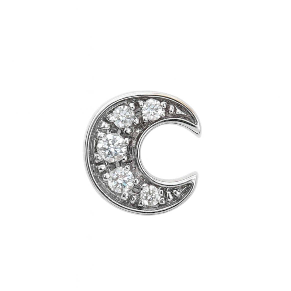 Aro individual en oro blanco 18kt, con un delicado diseño de luna creciente engastada con diamantes naturales.